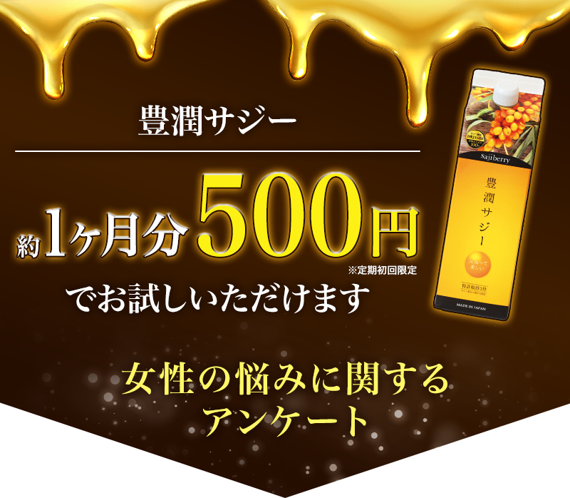 『1人でも多くの女性の力になりたい!』という開発企業の想いから、豊潤サジーは約1ヶ月分500円でお試しできるんです!
